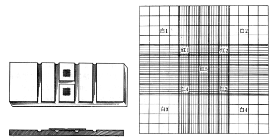 圖1 血球計數板構造(上、平面圖;下、側面圖) 圖2血球計數板的網絡分區與分格